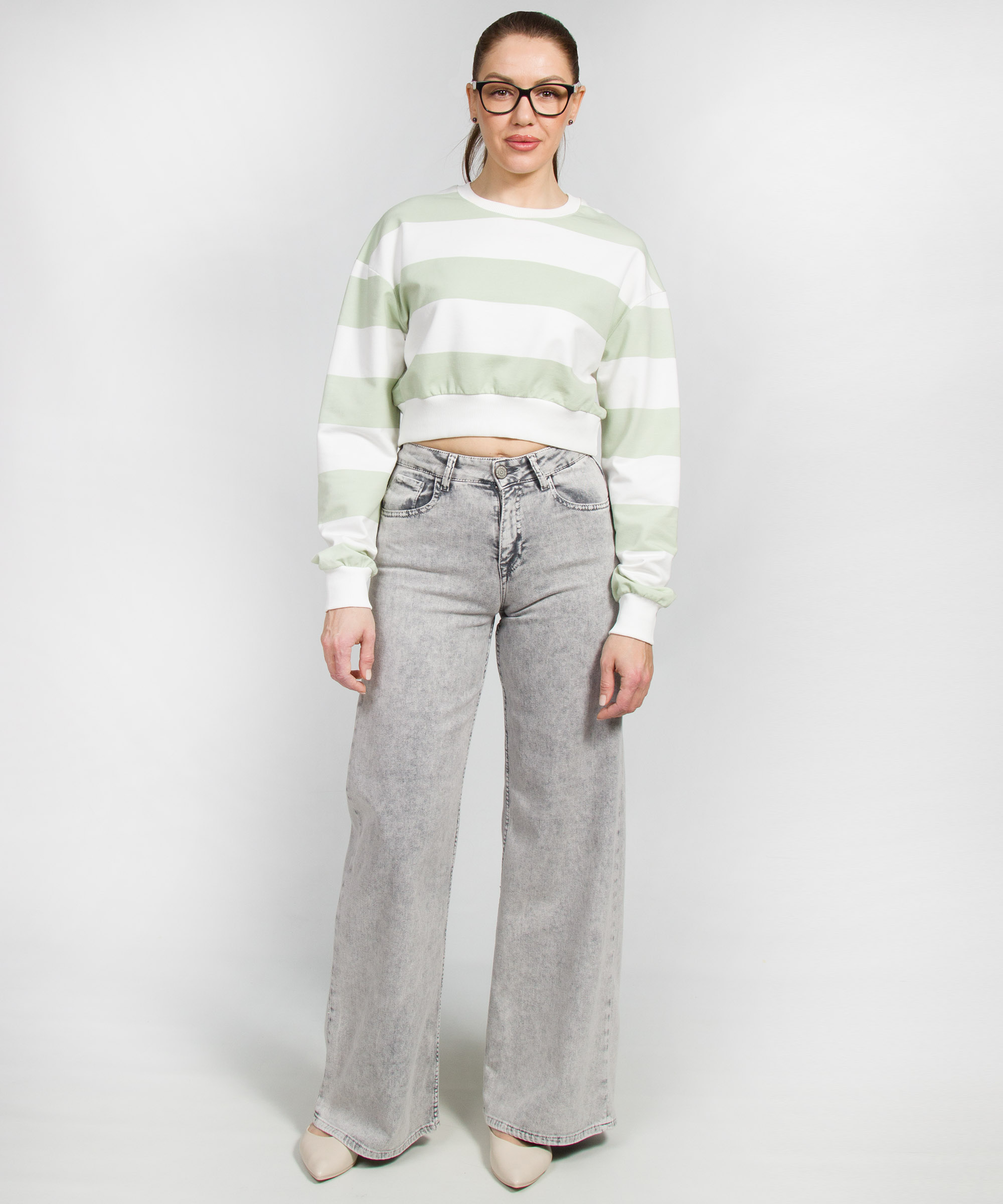 Джинсы от WHITNEY выполнены из натурального хлопка. У модели высокая посадка; широкий клёш; приятный, вываренный светло-серый цвет; пять функциональных карманов.