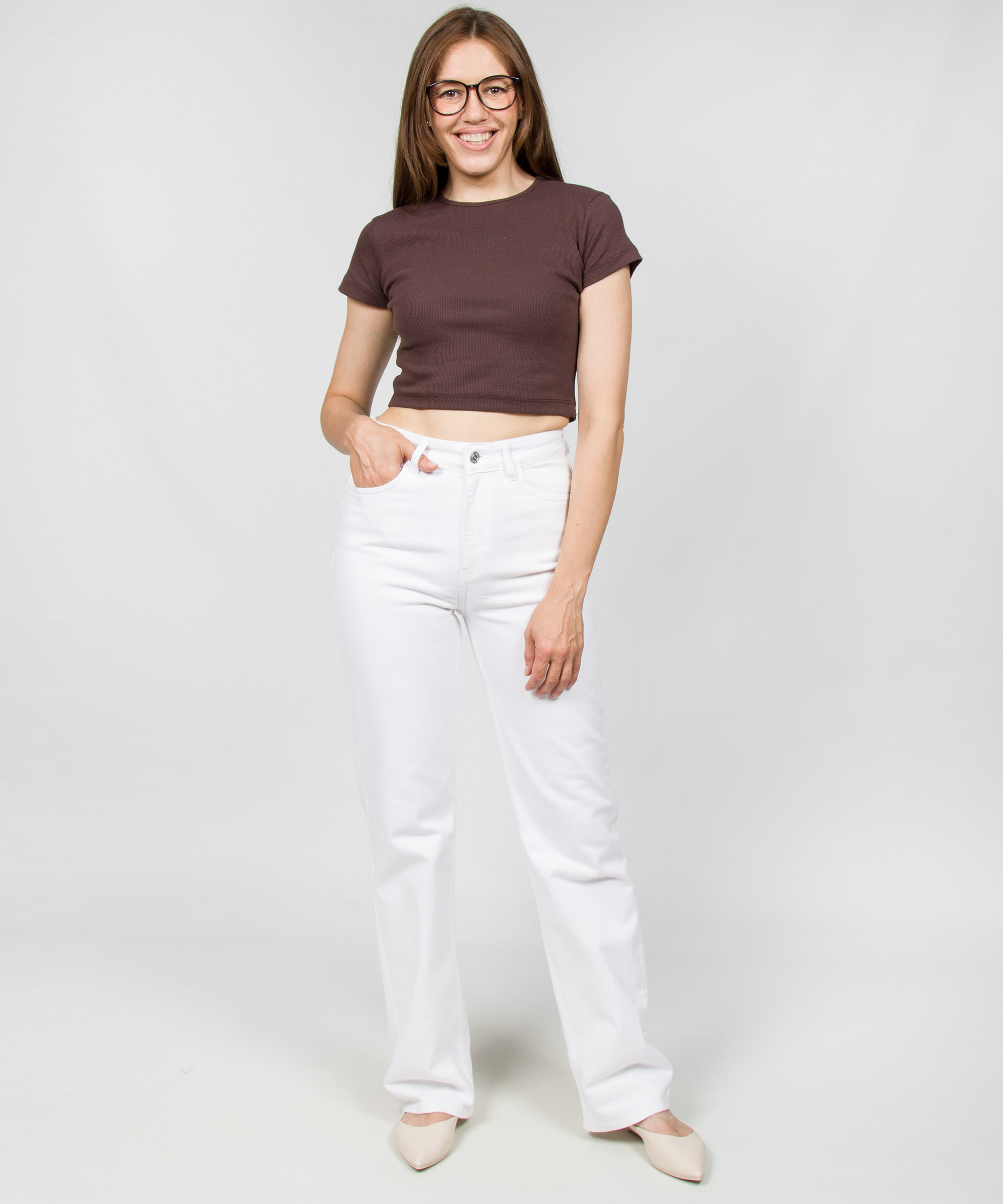 Джинсы от WHITNEY выполнены из натурального хлопка. У модели высокая посадка; прямой от бедра крой; белый цвет; пять функциональных кармана.