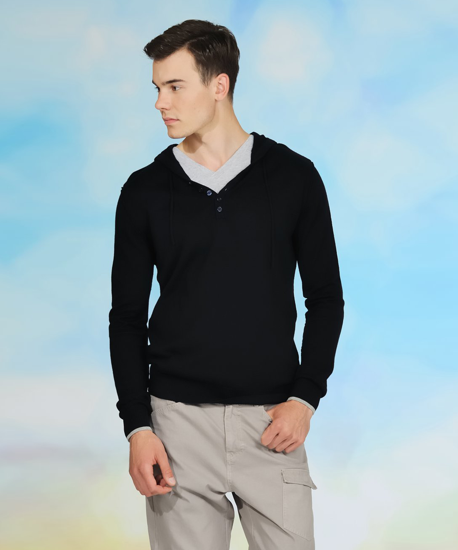 Джемпер от TOM FARR выполнен из смешанного трикотажа. У модели свободный фасон; темно-синий цвет; капюшон регулируемый шнурком.