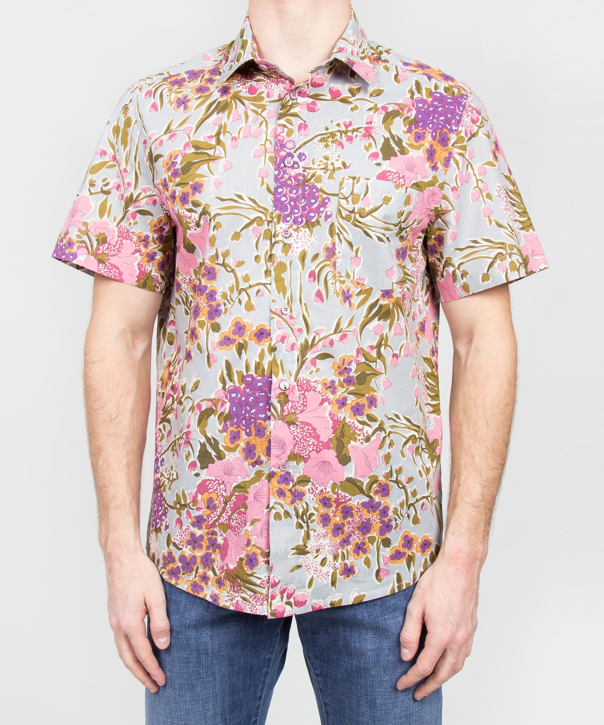 Рубашка от CONVER выполнена из натурального хлопка. У модели отложной воротник; свободный фасон; короткий рукав; цветочный принт; застежка на пуговицы; один нагрудный карман.